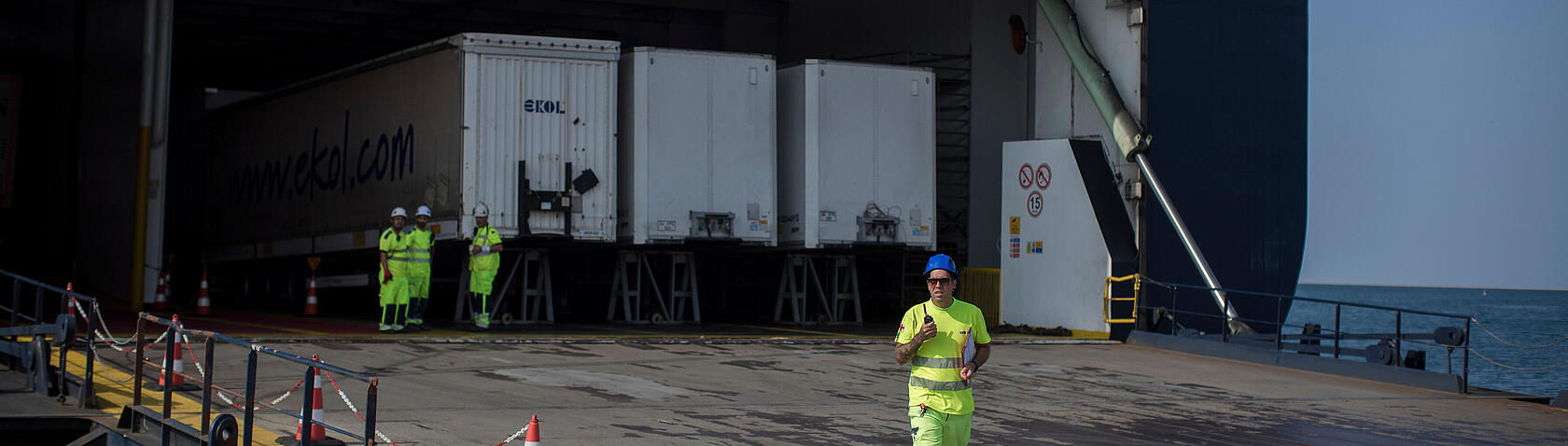 - Movimentazione di rimorchi per autocarri, roll trailer, veicoli semoventi e container presso due attracchi Ro-Ro